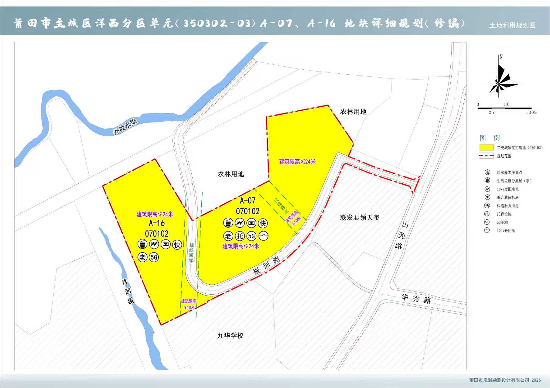 《莆田市主城区洋西分区单元(350302-03)A-07、A-16地块详细规划(修编)》由莆田市规划勘测设计有限公司编制,规划方案经各部门意见征询、专家评审和公示后,2025年9月18日经莆田市人民政府批复(莆政土〔2025〕191号),现将规划成果予以公布。