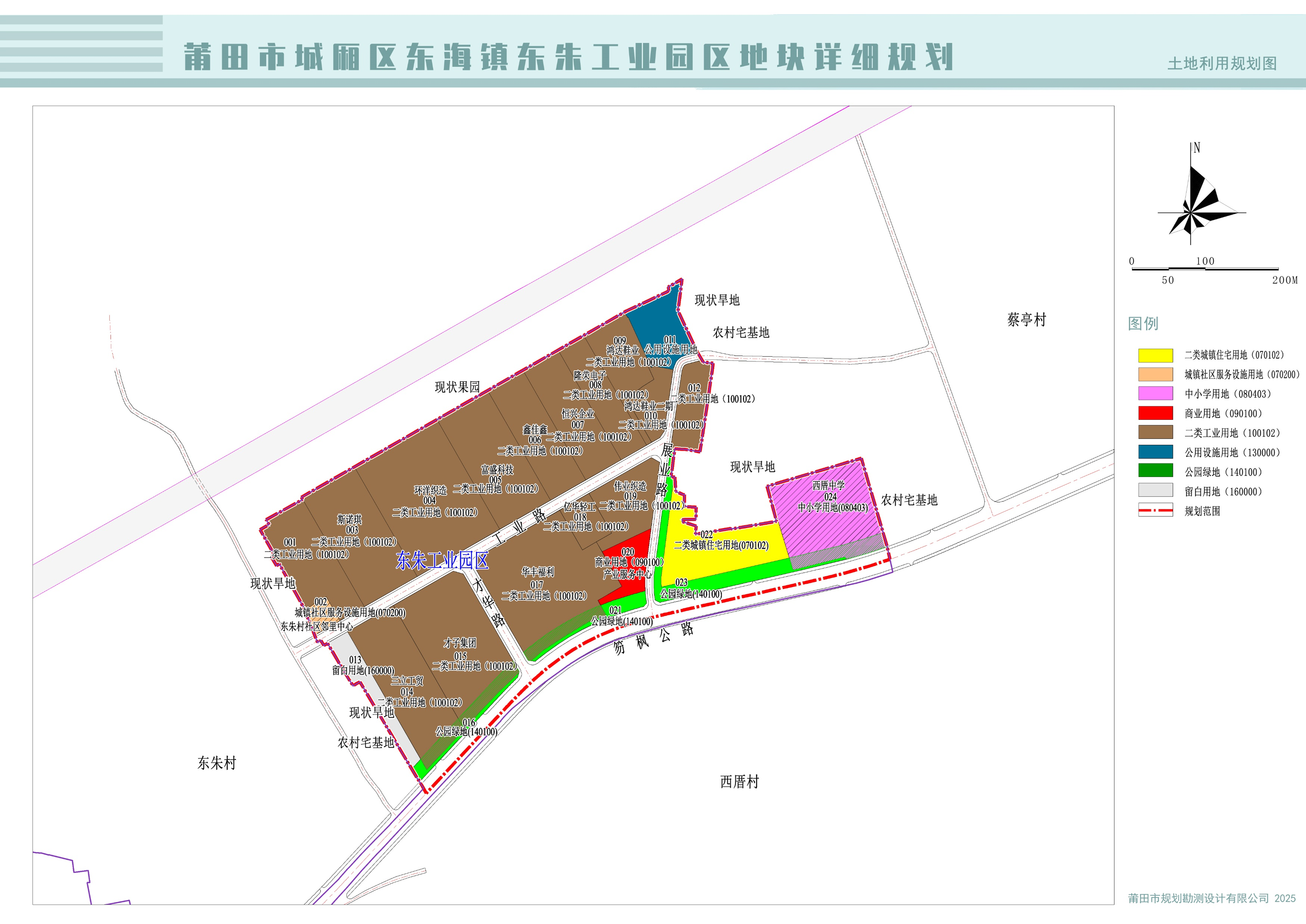 《莆田市城厢区东海镇东朱工业园区地块详细规划》由莆田市规划勘测设计有限公司编制,规划方案经各部门意见征询、专家评审和公示后,2025年9月23日经莆田市人民政府批复(莆政土〔2025〕199号),现将规划成果予以公布。