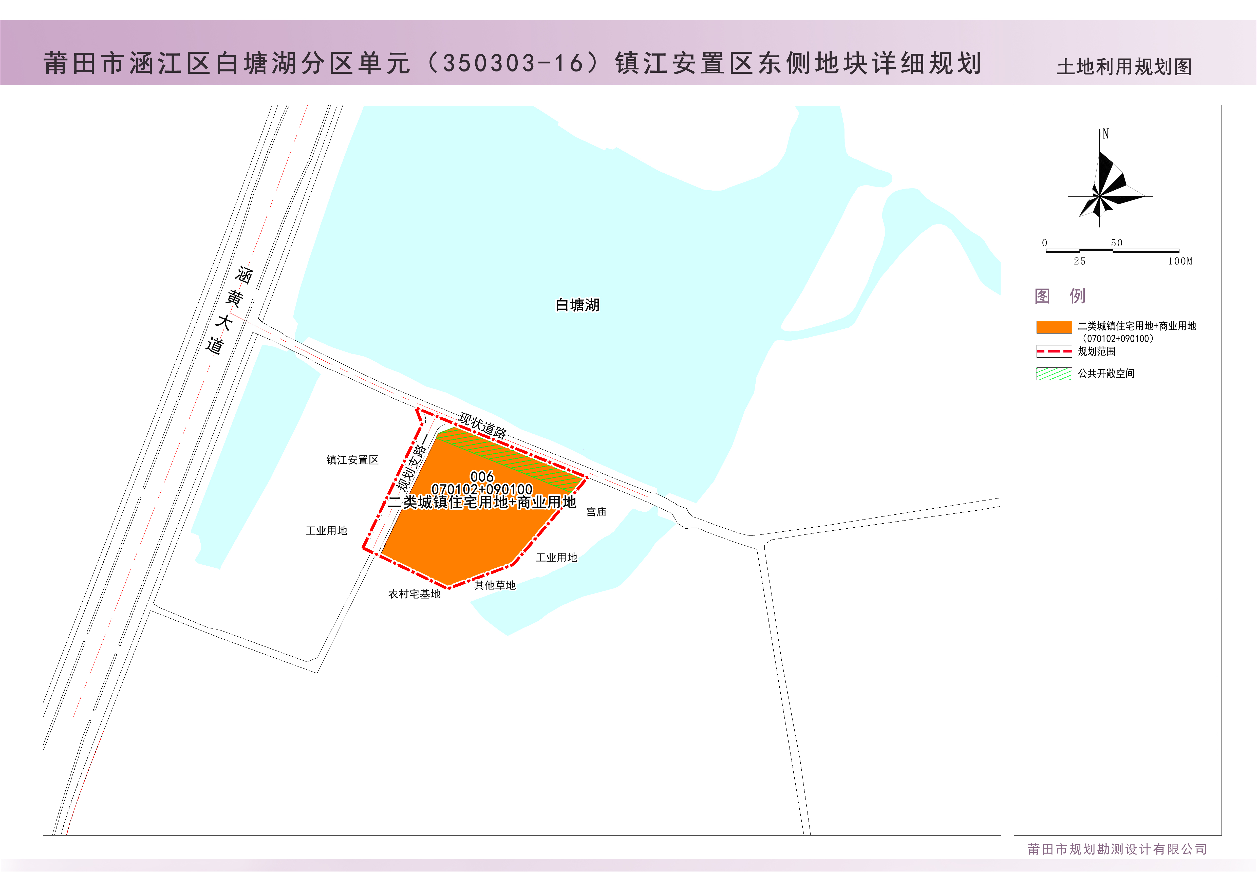 附件:《莆田市涵江区白塘湖分区单元(350303-16)镇江安置区东侧地块详细规划》公布内容