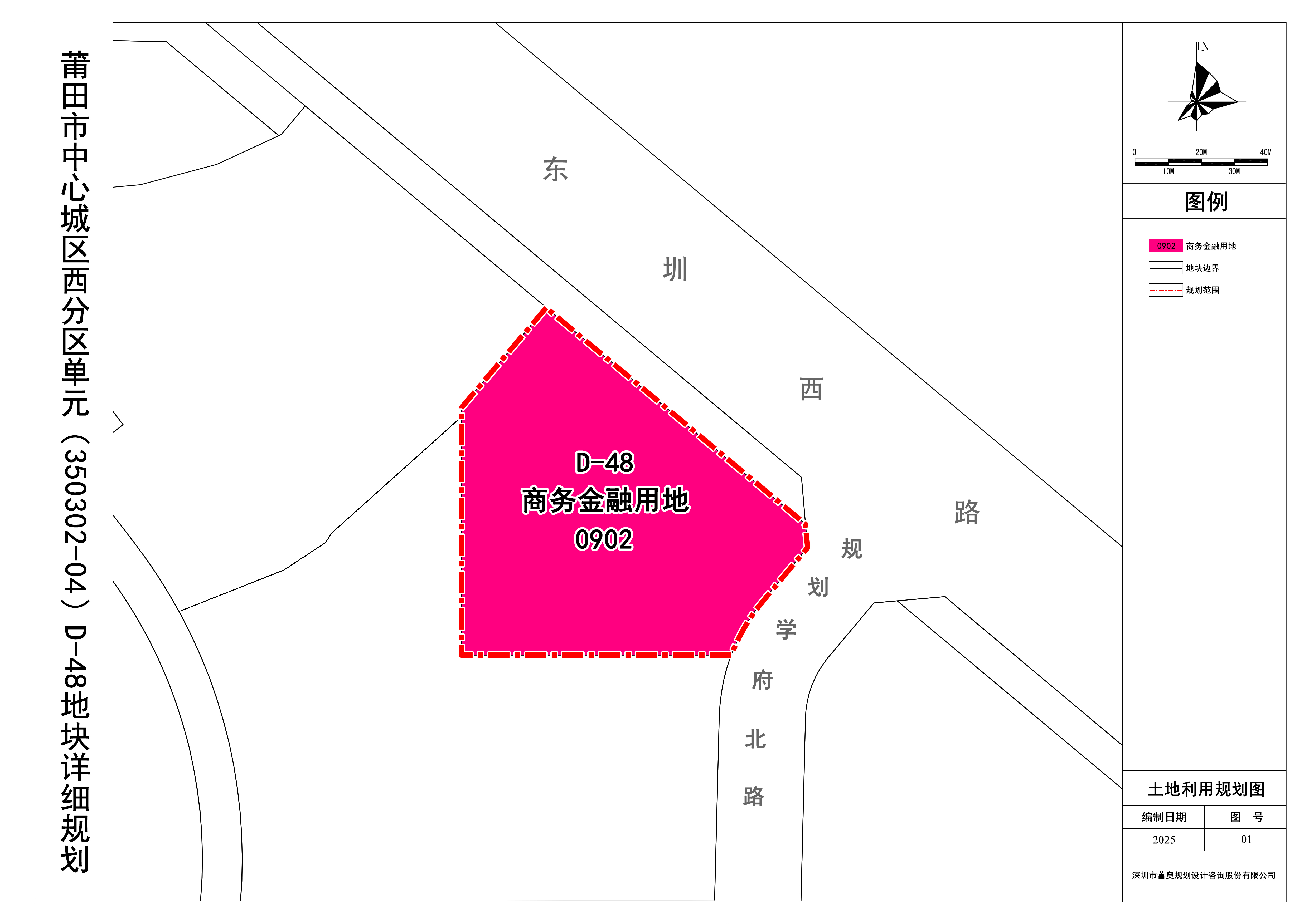 《莆田市中心城区西分区单元(350302-04)D-48地块详细规划》由深圳市蕾奥规划设计咨询股份有限公司编制,规划方案经各部门意见征询、专家评审和公示后,2025年10月16日经莆田市人民政府批复(莆政土〔2025〕254号),现将规划成果予以公布。