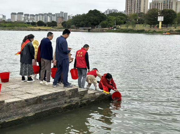 秋末的木兰陂,水光潋滟,古闸流芳。2025 年 11 月 18 日,莆田市城厢区自然资源局党委组织党员干部赴木兰陂水域,开展光唇鱼增殖放流主题党日活动。党员干部们以 “生态卫士” 的姿态,将121.8万尾优质光唇鱼苗投放至清澈河水中,以党建引领生态实践,为这座世界灌溉工程遗产的水域生态修复注入 “红色动能”。